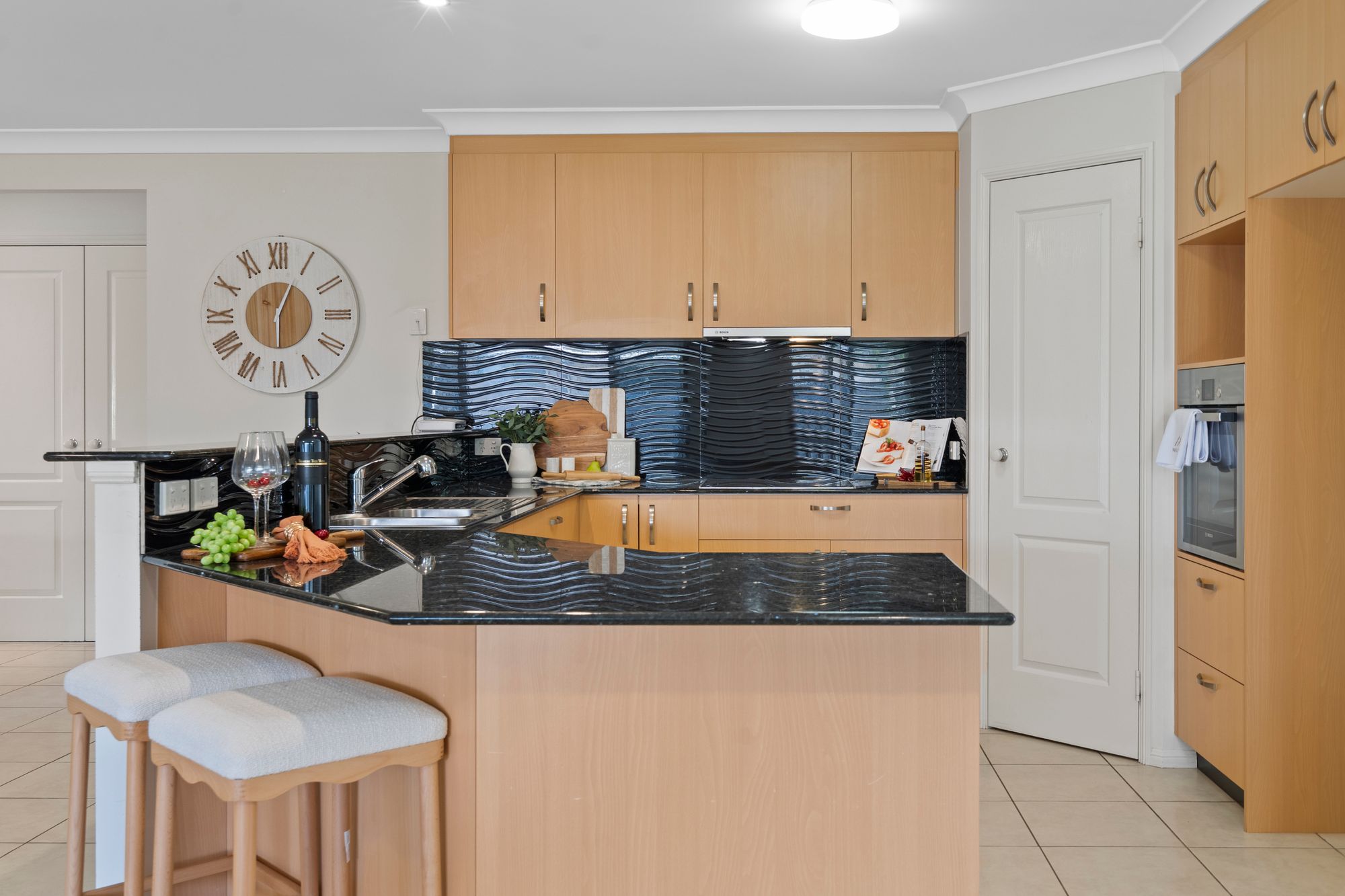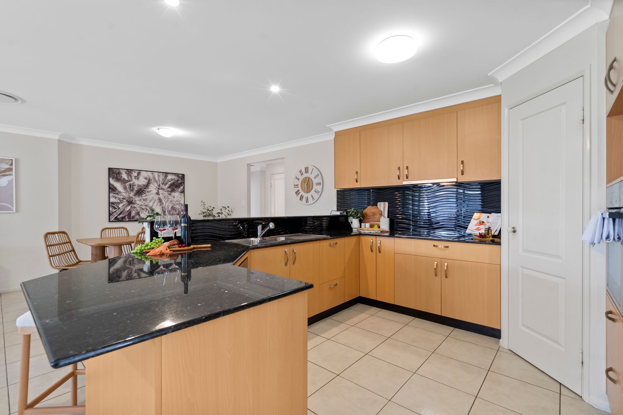 * Chefs kitchen with granite bench tops and European appliances