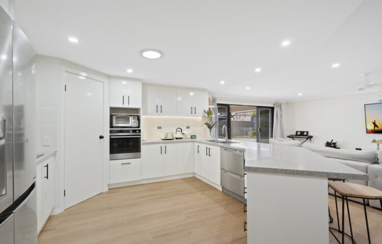 * Massive chefs kitchen with stone bench tops and walk in pantry