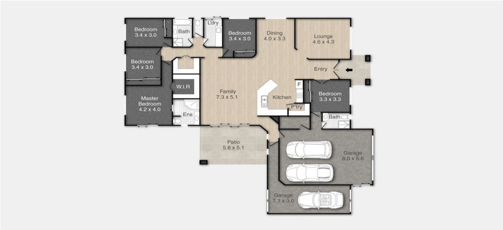 * Triple garage – All oversized!