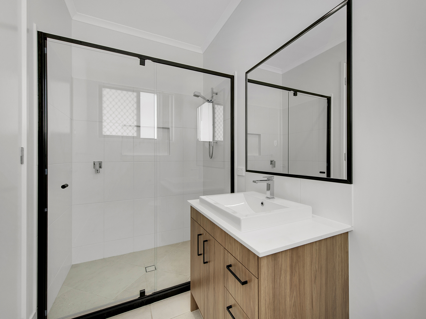 * Large main bathroom featuring large shower and stone bench tops